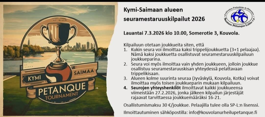 Tervetuloa mukaan kaikille petanquen harrastajille avoimiin kisoihin. Pelimuotona siis duppeli.